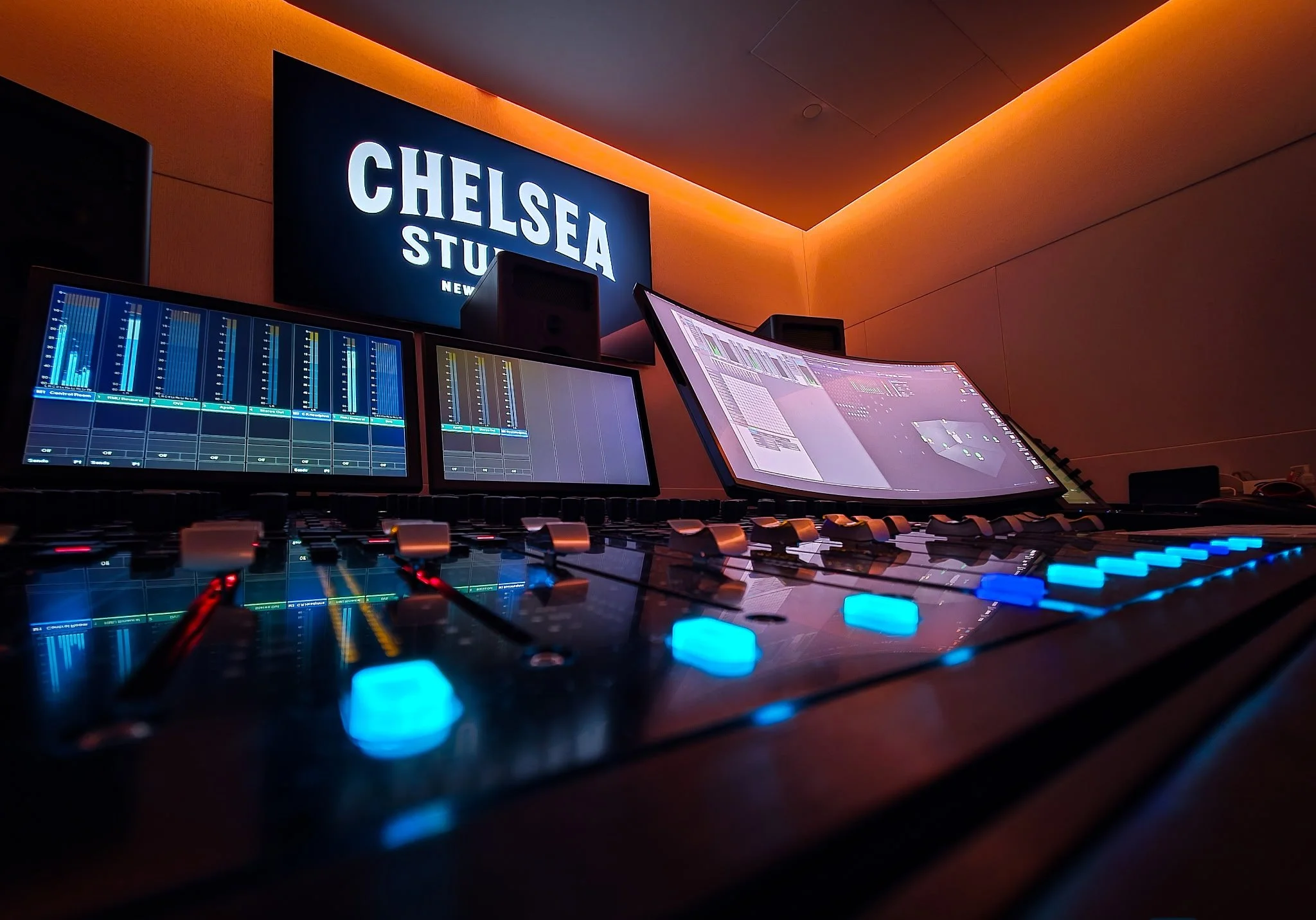 Chelsea Studios in New York City features three professional audio studios an event space and a dedicated Content Room. Studios 1 and 3 are anchored by large-format consoles—an SSL Origin - 32 Channels and an Avid S6 Mixing Control Surface, respectively. Studios 2 and 3 are set up for immersive audio production, utilizing Dolby Atmos monitoring systems and running Pro Tools Ultimate on our Mac systems.